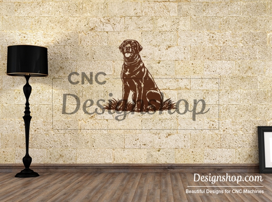 The Labrador Wall Art is intended to be cut from metal using a CNC cutting system. Once fabricated, this artwork can be displayed as a wall hanging or garden ornament to show love for the breed. This artwork is a representation of a Labrador Retriever dog sitting in a patch of grass.
